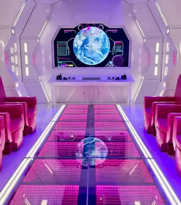 Plego revolutionized the application with an AI Piloting system, multiple kiosks and a star map - creating innovative experiences for kids to explore their favorite planets through simulated flight.