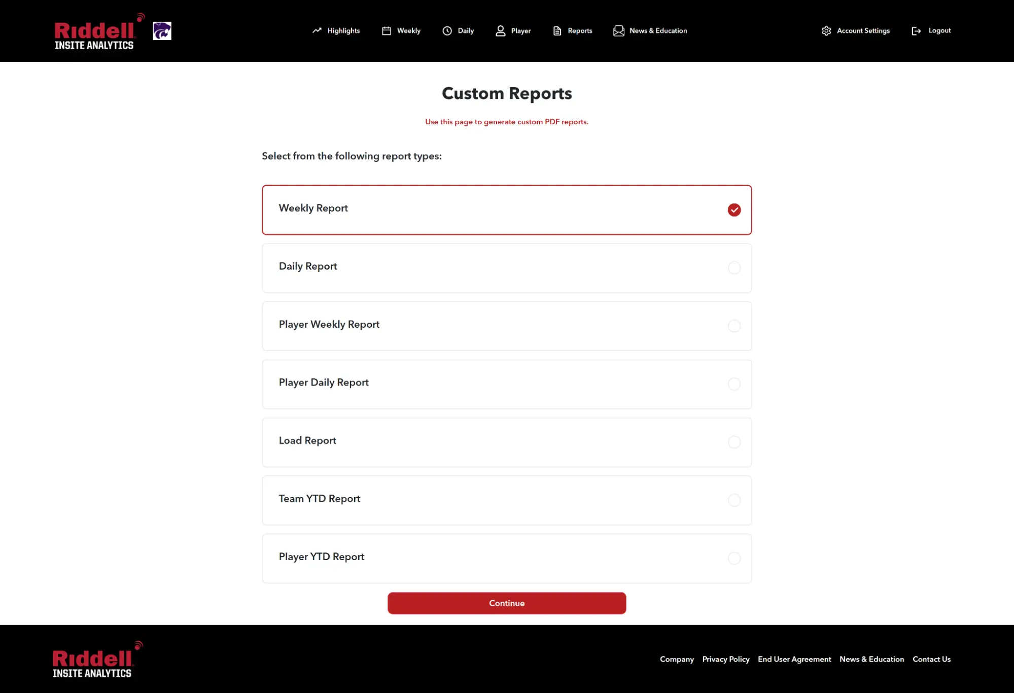 The Reports feature streamlines the process of generating customized PDF reports, helping teams track player safety and performance over time.